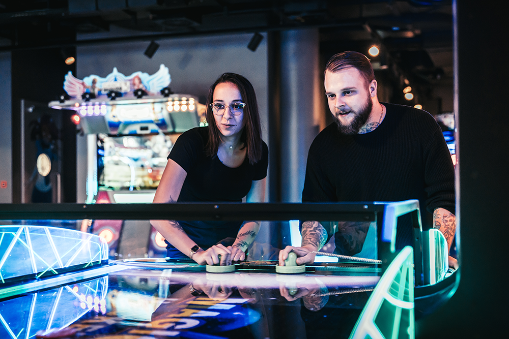Plongez dans une zone de jeu futuriste où arcade nouvelle génération, réalité augmentée et interactions tactiles s’unissent pour une expérience unique. Avec plus de 30 jeux d’arcade, retrouvez le plaisir du jeu entre amis ou en famille, dans une ambiance conviviale et intergénérationnelle. Des machines pour petits et grands, des défis pour tous les niveaux : ici, le fun est garanti. Et pour aller encore plus loin, découvrez ATMOTION avec son Valomotion, un parcours interactif où votre corps devient le contrôleur, et deux PXL, qui repoussent les limites du jeu visuel et tactile.