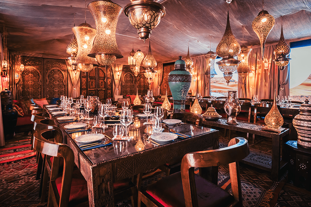 Offrez à votre groupe une parenthèse envoûtante sous une tente orientale nichée au cœur du désert. Dans une ambiance chaleureuse et dépaysante, vivez une expérience hors du commun mêlant moments de partage, activités conviviales et dégustation de savoureux plats orientaux. Que ce soit pour un team building, un anniversaire ou une célébration privée, cette immersion aux parfums d'ailleurs marquera les esprits et laissera des souvenirs impérissables.